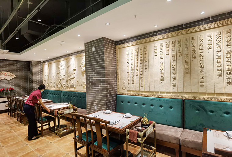 空間中我們則用西關(guān)常見的騎樓、灰磚、鑊耳山墻、趟門,把百年傳承的文化韻味裝飾出來,讓消費(fèi)者身臨其境,感受蘩樓的西關(guān)點(diǎn)心文化。這是把