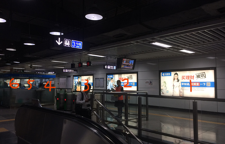 通過(guò)在地鐵站現(xiàn)場(chǎng)觀察,品深發(fā)現(xiàn)蘩樓的地鐵海報(bào)位置單面靠墻,閱讀動(dòng)線是沿著墻的路徑左右行走,目標(biāo)是向前方換乘或出站,由于客流密集,路過(guò)此處的人完全無(wú)法停下來(lái),看到海報(bào)的大部分的機(jī)會(huì)是眼睛的余光一掃而過(guò),邊走邊看。