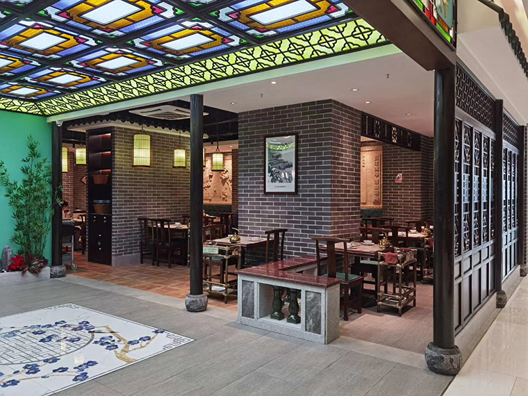 蘩樓上海首家店依然貫徹“百年傳承,西關茗點”的空間形象定位,將傳統嶺南建筑常用的鑊耳山墻、滿洲窗、廣州老建筑的趟門,具有鮮明地域特色的西關大屋,廣府人最熟悉的雞公欖,在空間中靈活使用,達到了一種步移景異,一步一景的空間效果。品深餐飲設計則始終堅持在空間中巧妙展現品牌,軟裝陳設設計中,堅持品牌動線的設計理念,將