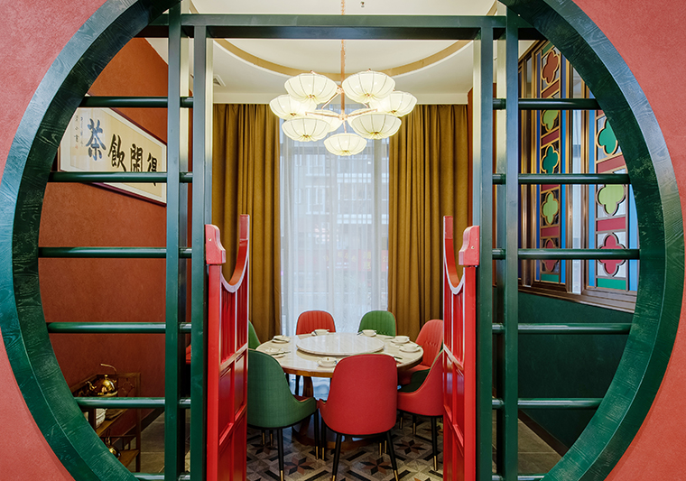 ,通過“紅配綠,大紅配大綠”這種大膽的色彩運用,將“得閑飲茶”的廣式休閑飲食生活文化營造的非常鮮明,時尚又極富歷史厚重感,深受廣大顧客的喜愛,為門店創造了持續穩定的客流。