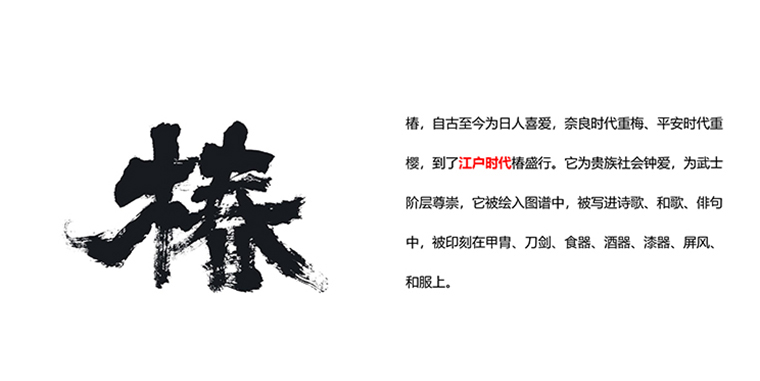 品牌的借船出海,搭文化便車。中間斷開的線條,是玉字的變形,象征品牌典雅,精致的特性。徽章中間一個日本文字“椿”,精準(zhǔn)表達(dá)品牌核心名。
