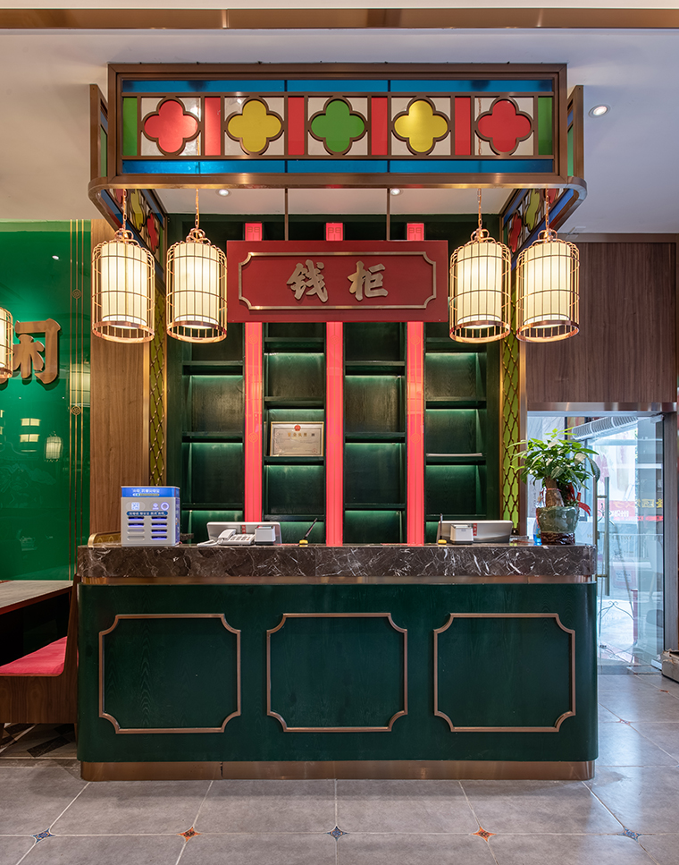 品牌記憶點:嶺南園林鑊耳山墻+西關廣式花窗+大紅+深綠+玫瑰金