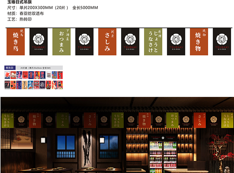 品牌記憶點:日本京都風格門頭設(shè)計+玉椿標識及家徽+燒鳥手繪畫面+四大主色調(diào)。