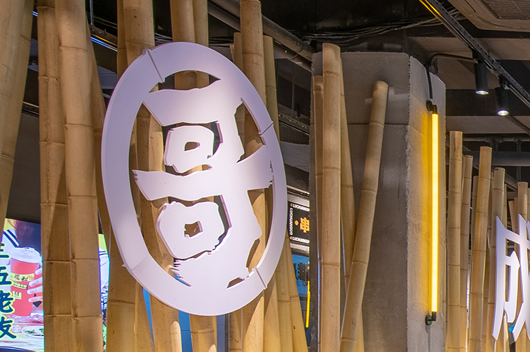 在空間中,我們用鹵串哥品牌強關聯的具體一個竹元素串聯整個裝飾,形成品牌專屬識別記憶,并與串串香的竹簽子,竹椅相呼應,既有品類特征,又是品牌文化的經典傳達。