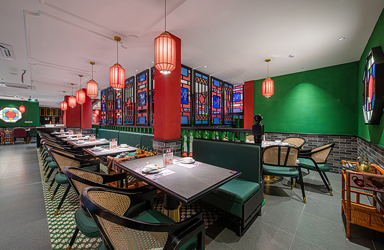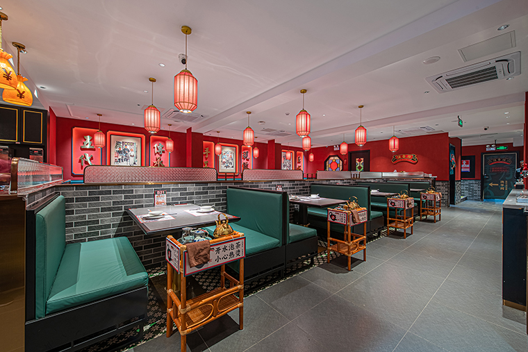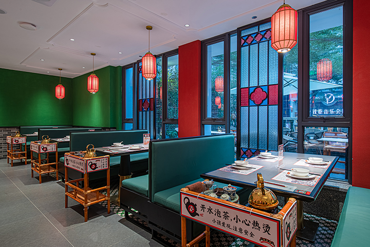 1、用品牌強(qiáng)關(guān)聯(lián)的具體一個(gè)元素串聯(lián)整個(gè)裝飾,形成品牌專屬識(shí)別記憶。空間中我們使用了滿洲窗,用滿洲花窗串聯(lián)整個(gè)門店,與品牌傳達(dá)的西關(guān)老號(hào),五代傳承高度貼合,拍照打卡效果很好,老茶樓的氛圍感迅速出來了。